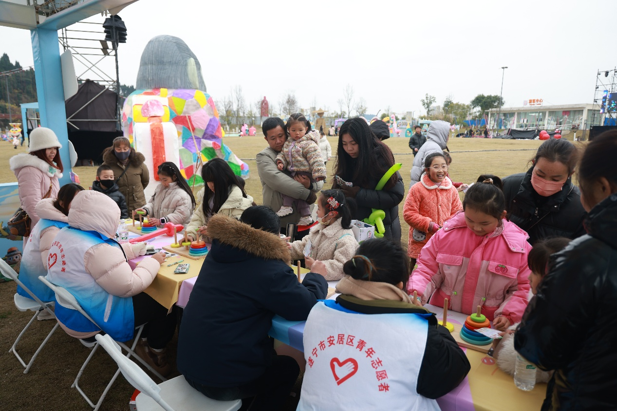 作为安居重点打造的亲子游、近郊游文旅项目,本次活动紧密围绕家庭出行需求,以童话场景、色彩艺术与互动体验为核心,为市民提供了一处“家门口”的假日休闲好去处。孩子们在彩石迷阵中穿梭探索,家长陪伴左右,全家沉浸于梦幻氛围中。除了彩石打卡点,景区还专设多项亲子互动游戏区,鼓励家庭协作,现场洋溢着一片欢声笑语。