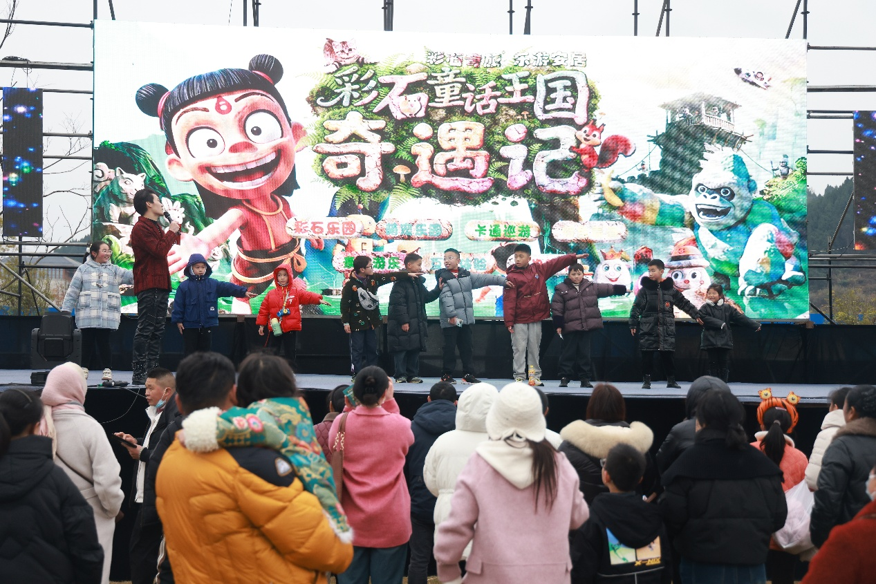 元旦假期,安居区“彩石奇旅·乐游安居”彩石童话王国奇遇记活动精彩继续,在凤凰栖景区,40余组造型缤纷的彩石错落分布,结合全天候情景互动演出,吸引众多市民游客举家前来,在欢声笑语中欢度新的一年。